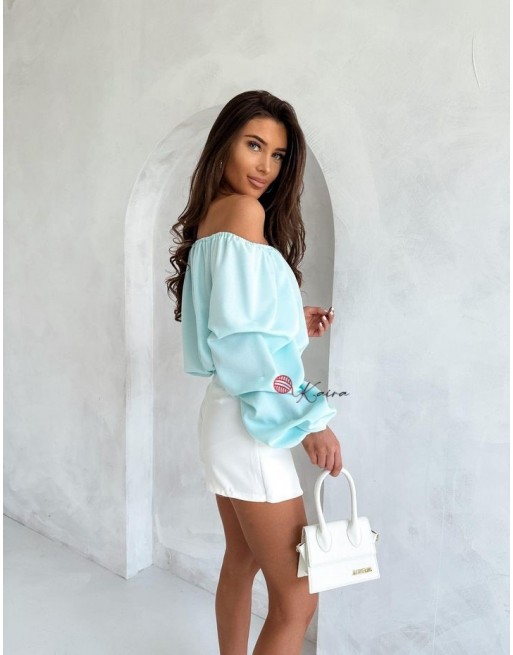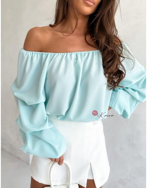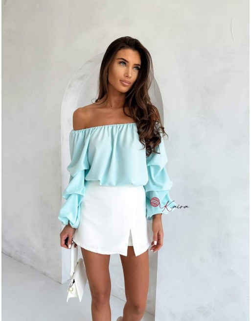 i delikatnie marszczonymi długimi rękawami zakończonymi