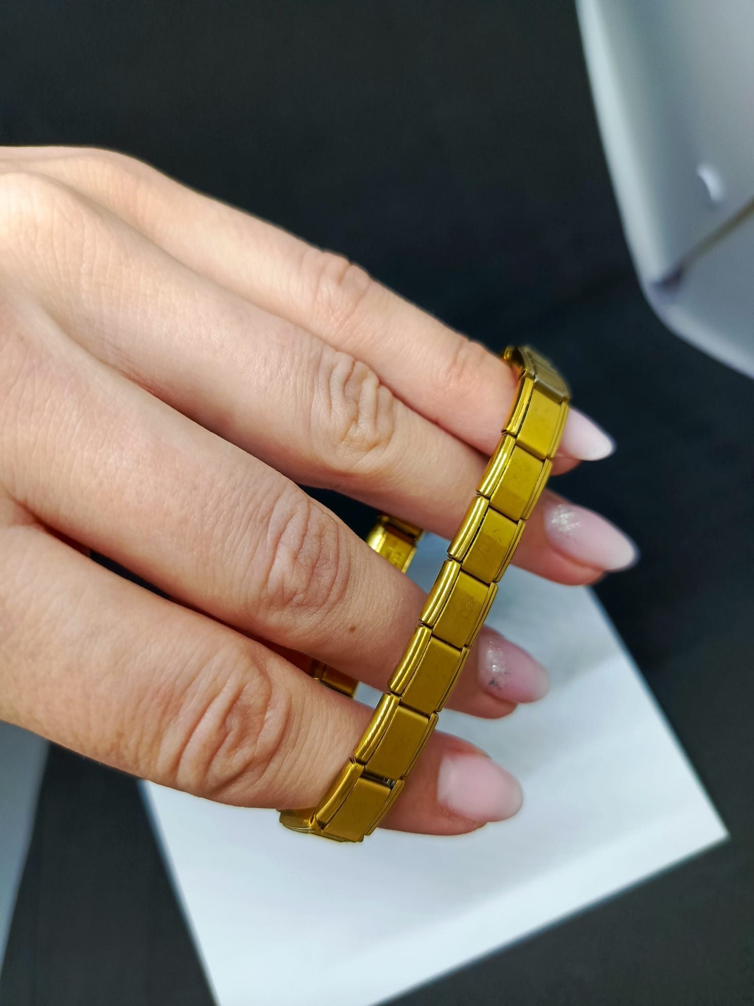 “Golden Flow” to stal chirurgiczna w eleganckim, elastycznym wydaniu – dopasuje się do Ciebie jak druga skóra. Subtelna, ale z charakterem. Noś ją solo albo miksuj