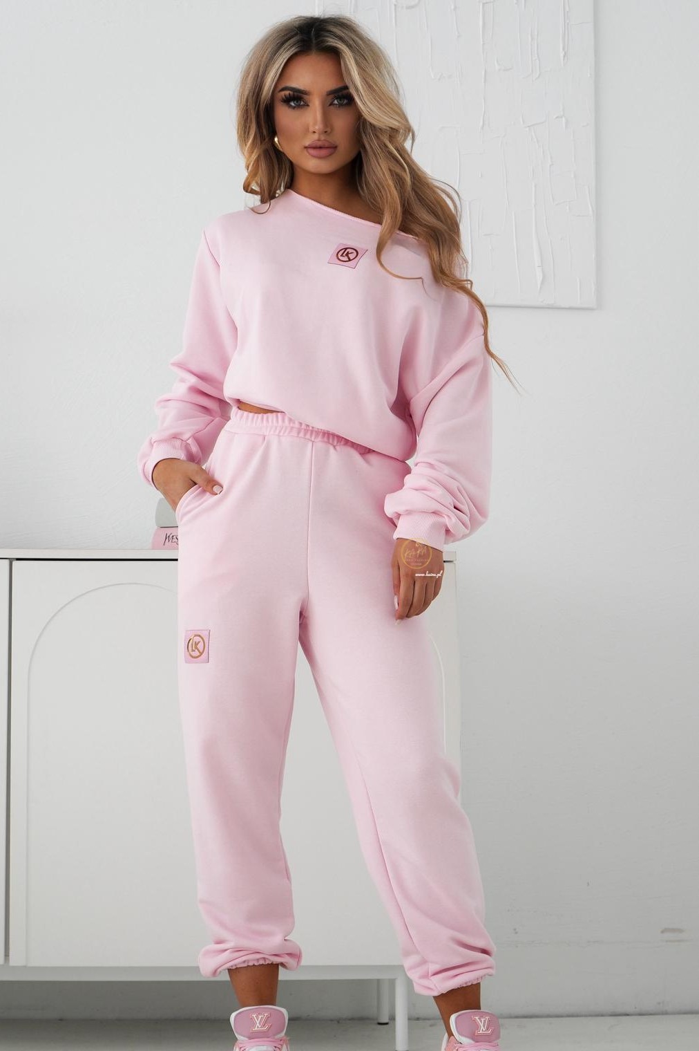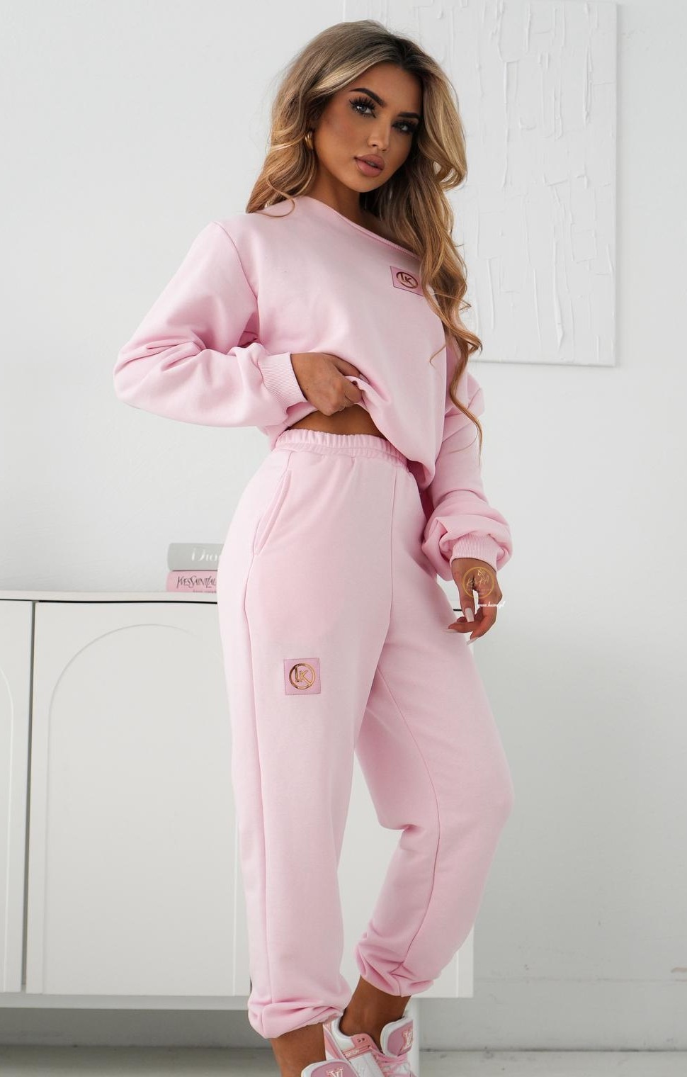 i swobodę ruchów. Spodnie z elastyczną gumą w pasie, kieszeniami oraz ściągaczami przy nogawkach doskonale dopasowują się do sylwetki. Całość dopełniają subtelne naszywki z logo, które nadają kompletowi modnego charakteru.