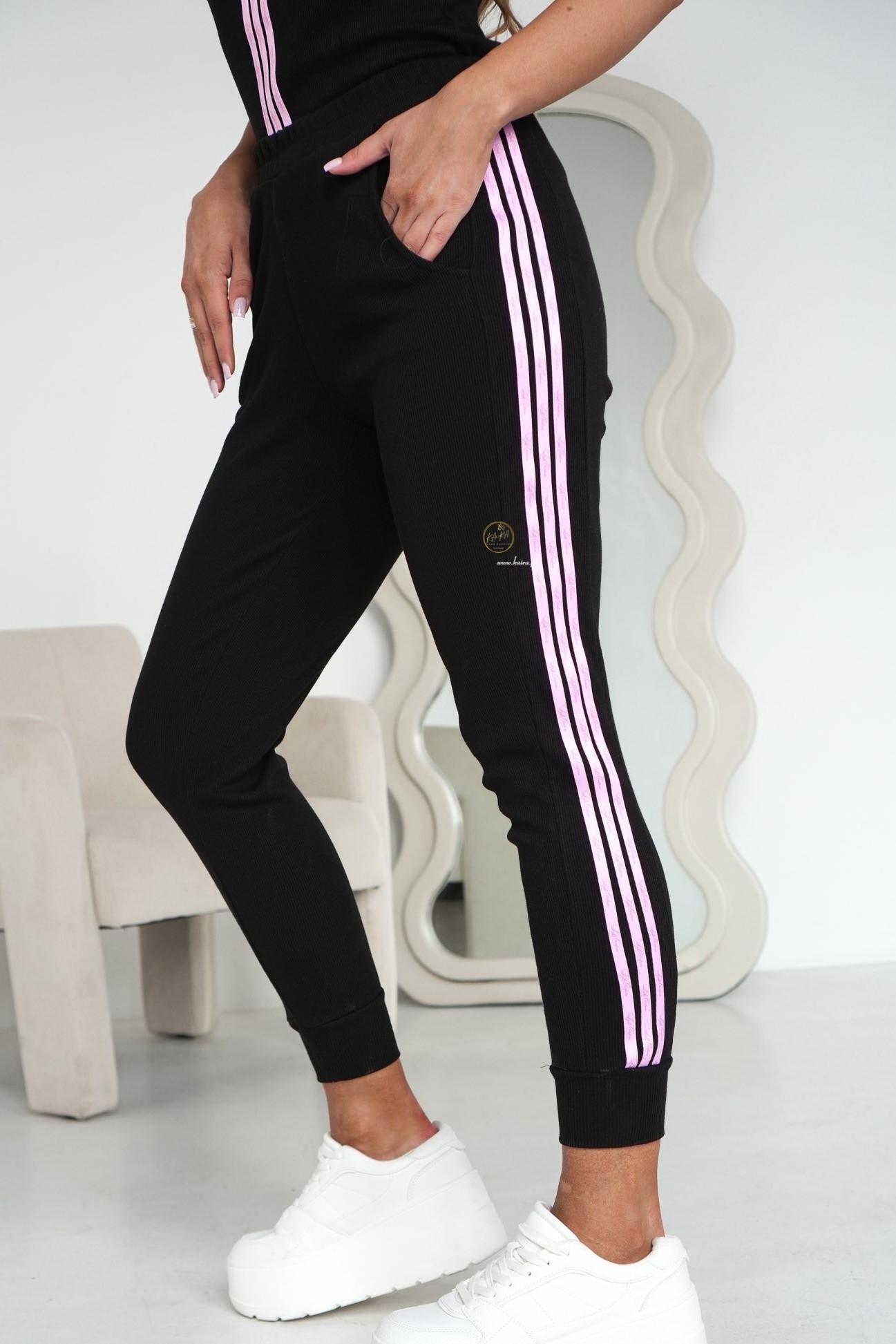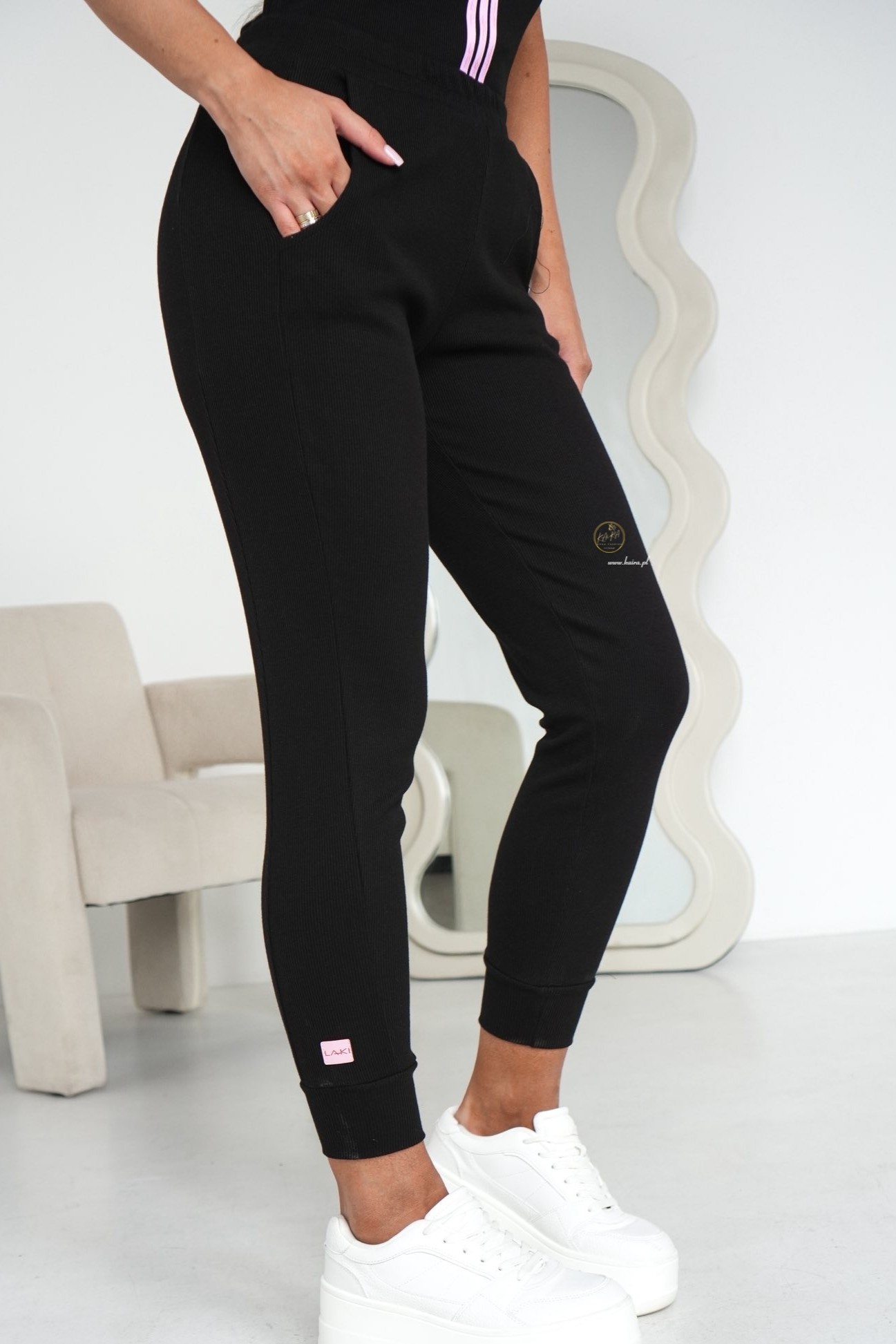 i lampasem na jednej nogawce świetnie układają się na figurze.