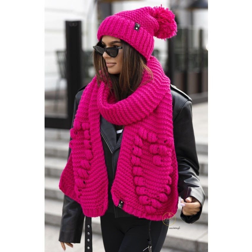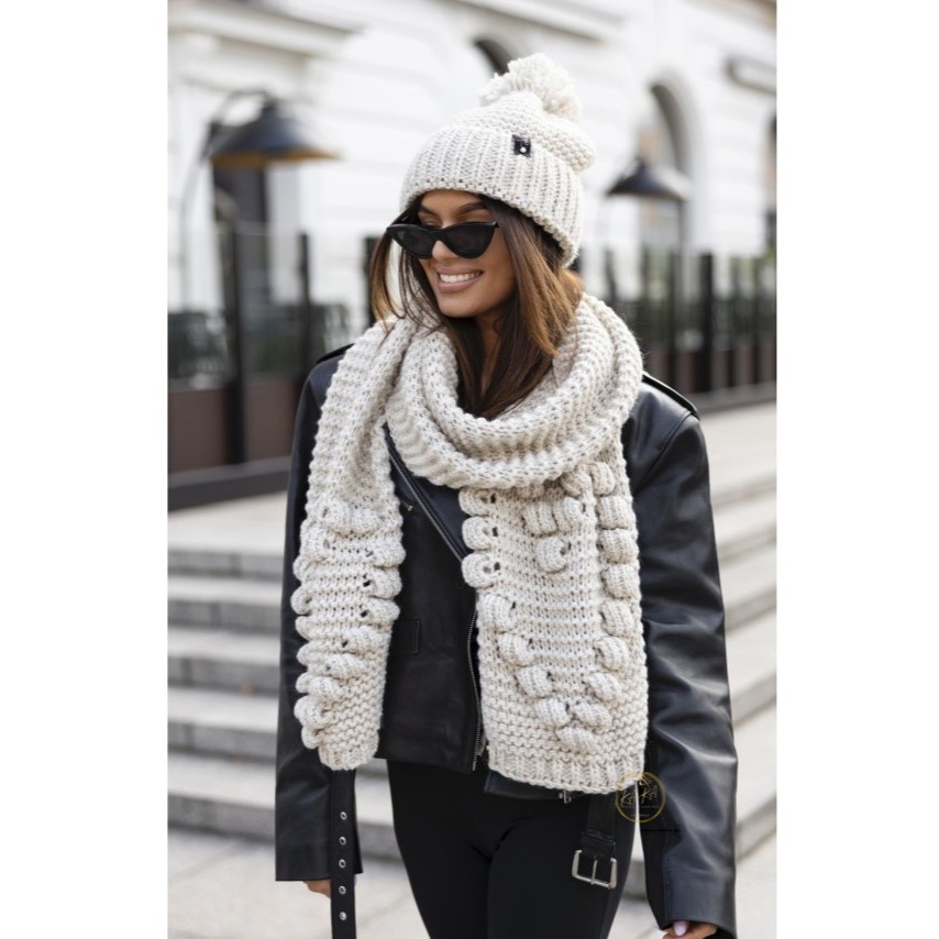 Komplet zimowy HEART to idealna propozycja dla Ciebie, jeśli szukasz stylu i ciepła na chłodniejsze dni! W skład zestawu wchodzi wyjątkowo ciepła czapka z modnym pomponem oraz obszerny szal ozdobiony pięknym, wypukłym wzorem w kształcie serca, który przyciąga wzrok