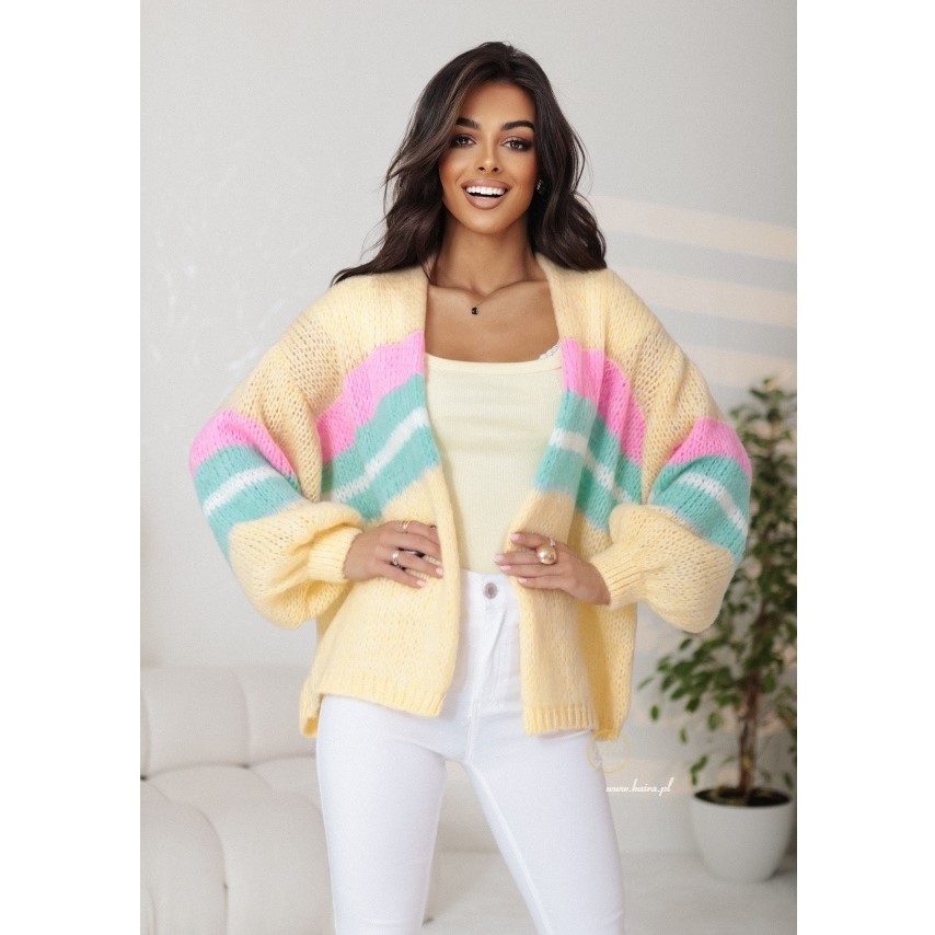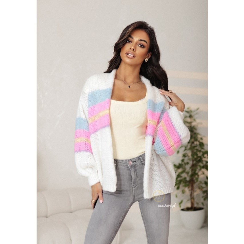 Ten krótki kardigan to must-have w Twojej garderobie! Wykonany z miękkiej dzianiny z domieszką wełny, otuli Cię