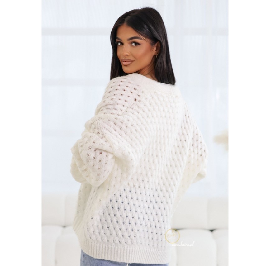 Ażurowy sweter Bullend to połączenie lekkości i stylu. Luźny, oversize’owy krój zapewnia komfort, a delikatny wzór dodaje subtelnej elegancji. Bufiaste rękawy i miękka dzianina sprawiają, że świetnie sprawdzi się w każdej stylizacji. Uniwersalny rozmiar idealnie dopasowuje się do sylwetki.