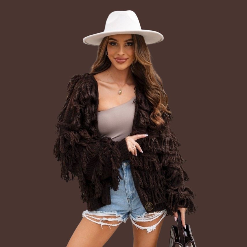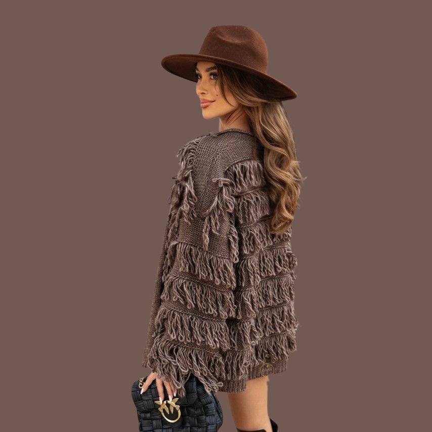 Sweter FOLK to wyjątkowa propozycja dla Ciebie, jeśli lubisz połączenie luzu i stylu boho ✨. Ma swobodny, lekko oversize’owy krój, dzięki czemu świetnie układa się na sylwetce i daje pełen komfort noszenia. Długie rękawy oraz ozdobne frędzle nadają mu oryginalny charakter i sprawiają, że każda stylizacja zyskuje modowy pazur. Sięga do bioder, więc idealnie pasuje zarówno do sukienek, jak i do jeansów czy szortów.