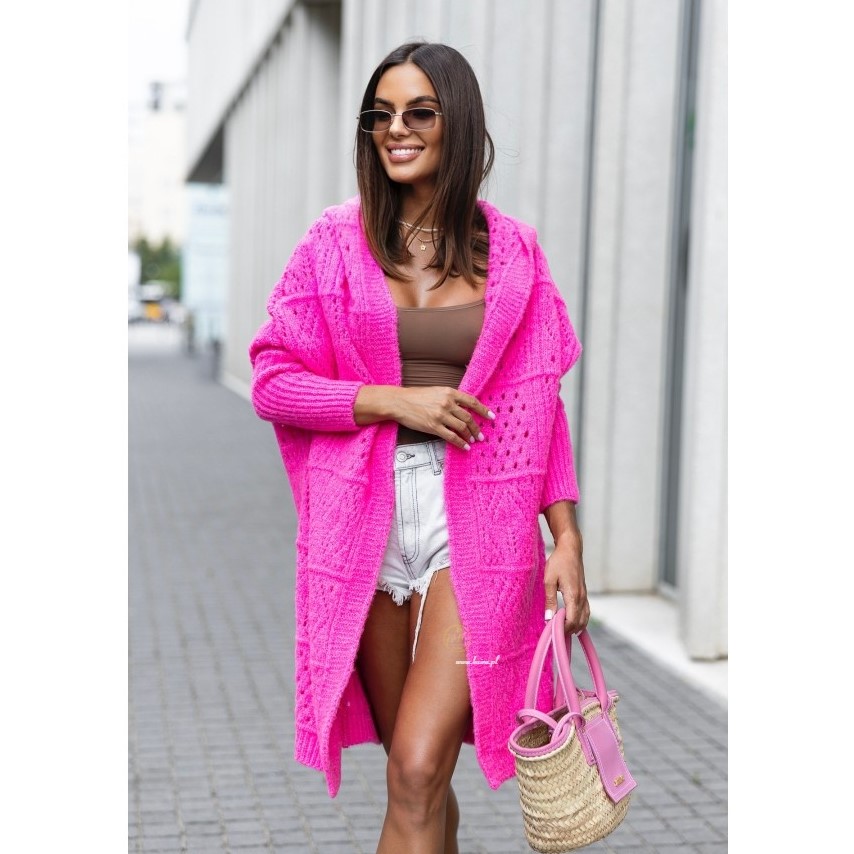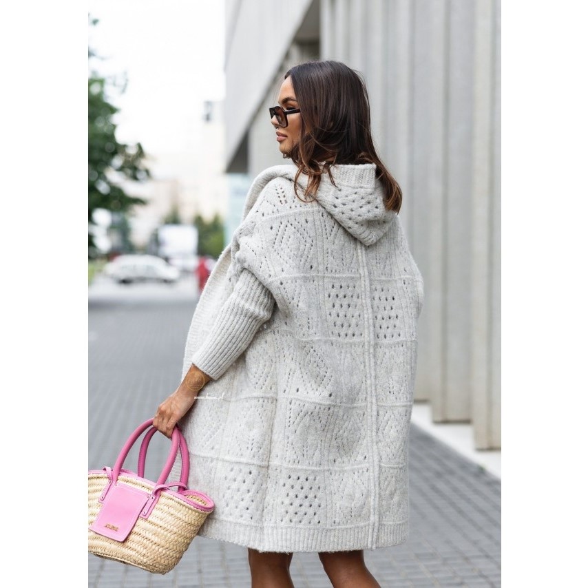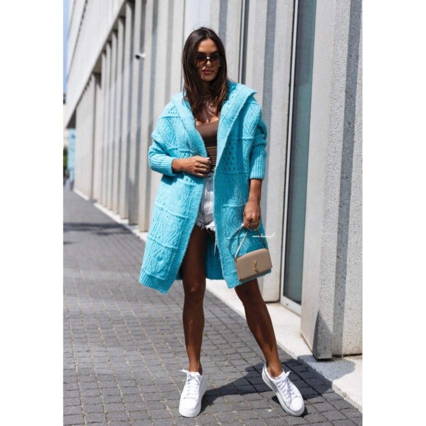 Otul się miękkością i wygodą kardiganu Teressa, który stanie się Twoim ulubionym towarzyszem chłodniejszych dni. Ma luźny, swobodny fason sięgający za kolano, praktyczny kaptur i obszerny splot dodający mu wyjątkowego uroku. Długie rękawy zapewnią Ci ciepło, a długość oversize pozwoli na wiele modowych stylizacji – od casualowych po eleganckie. Dostępny w różnych kolorach, abyś mogła wybrać ten idealny dla siebie.
