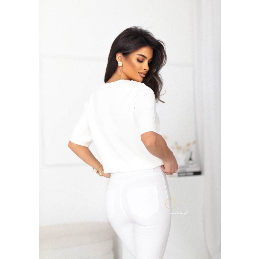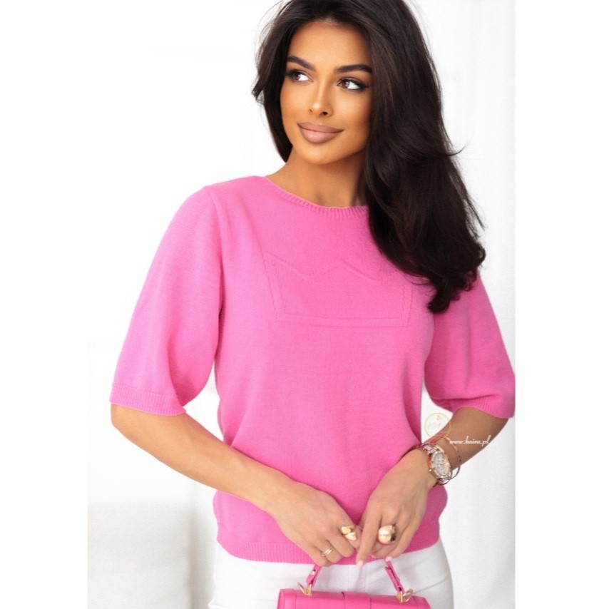 Cieniutka, przyjemna w dotyku dzianina otuli Twoje ciało delikatnością, zapewniając komfort przez cały dzień. Sweterek ma klasyczny, lekko dopasowany krój i subtelnie opuszczany rękaw, dzięki czemu idealnie układa się na każdej sylwetce.